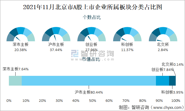 2021年11月北京市A股上市企業所屬板塊分類占比圖