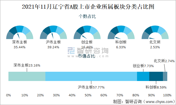 2021年11月遼寧省A股上市企業(yè)所屬板塊分類占比圖