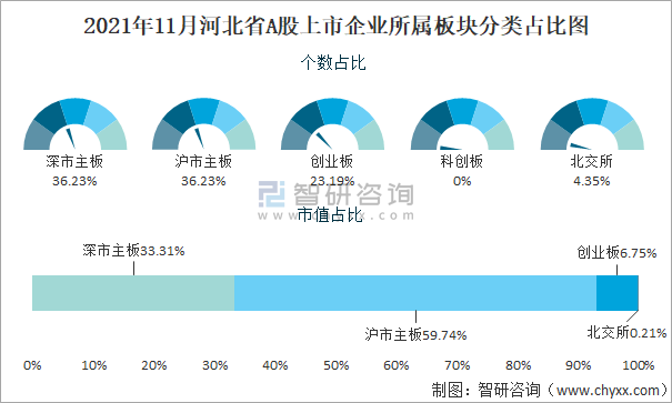 2021年11月河北省A股上市企業所屬板塊分類占比圖