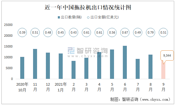 近一年中國拖拉機出口情況統計圖