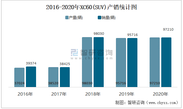 2016-2020年XC60(SUV)產(chǎn)銷統(tǒng)計(jì)圖