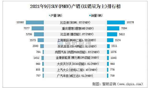 2021年9月SUV(PHEV)產(chǎn)銷(以銷量為主)排行榜