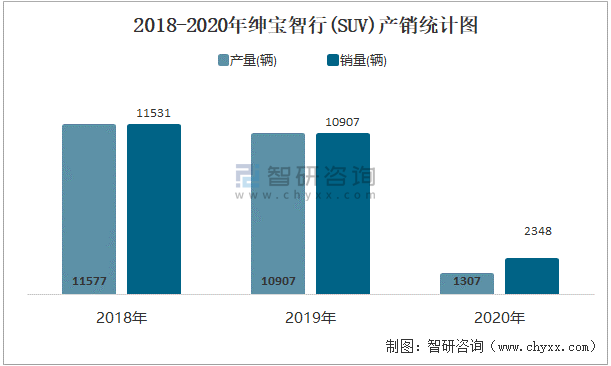 2018-2020年紳寶智行(SUV)產銷統計圖