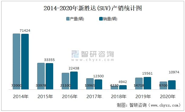 2014-2020年新勝達(dá)(SUV)產(chǎn)銷統(tǒng)計圖
