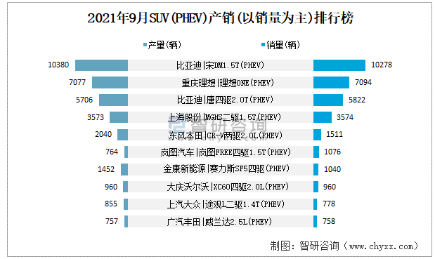 2021年9月SUV(PHEV)產銷(以銷量為主)排行榜