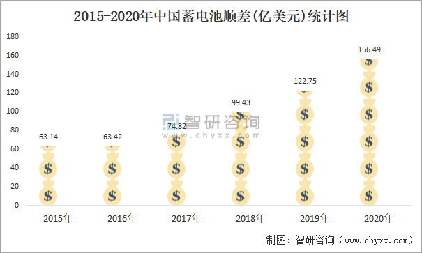 2015-2020年中國蓄電池順差(億美元)統計圖