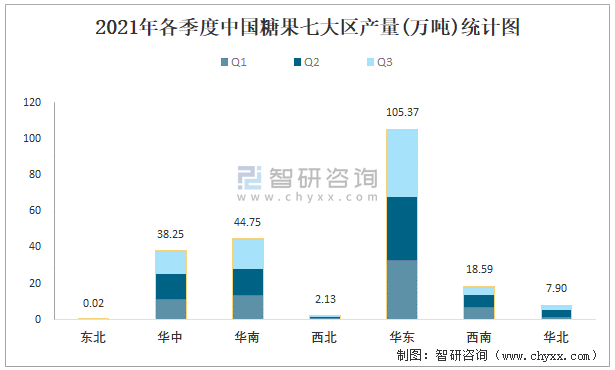 2021年1-9月中國糖果產量為217萬噸 華東地區產量最高(占比48.55%)