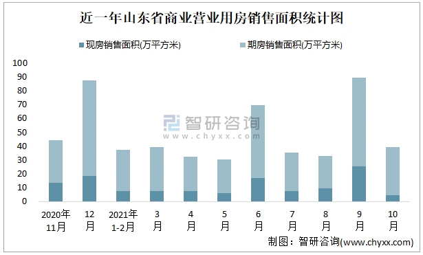 根據國家統計局數據可知:2021年9月山東省商業營業用房銷售面積為38.99萬平方米(其中銷售現房4.38萬平方米,期房34.61萬平方米);2021年1-10月山東省商業營業用房累計銷售面積為403.78萬平方米;近一年山東省商業營業用房期房銷售面積遠高于現房銷售面積。