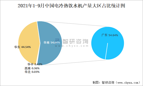 2021年1-9月中國電冷熱飲水機(jī)產(chǎn)量大區(qū)占比統(tǒng)計圖