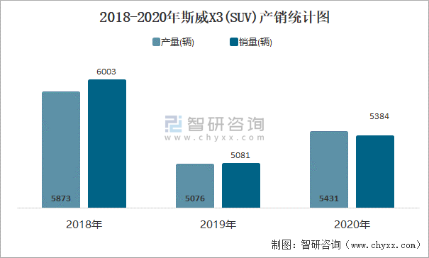 2018-2020年斯威X3(SUV)產(chǎn)銷統(tǒng)計圖