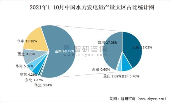 2021年1-10月中國水力發(fā)電量產(chǎn)量大區(qū)占比統(tǒng)計(jì)圖