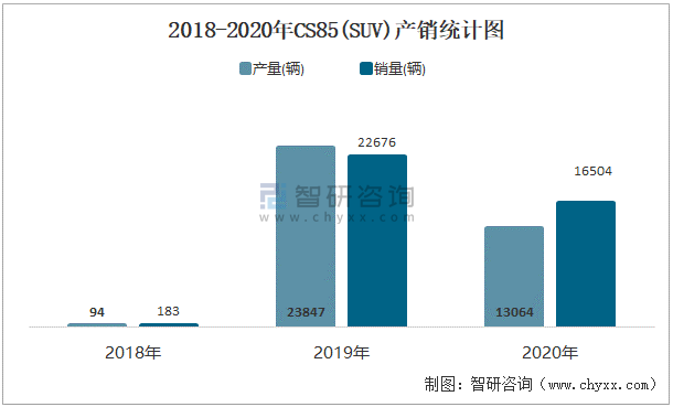 2018-2020年CS85(SUV)產(chǎn)銷統(tǒng)計(jì)圖
