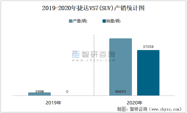 2019-2020年捷達VS7(SUV)產銷統計圖