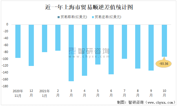 近一年上海市貿(mào)易順逆差值統(tǒng)計圖