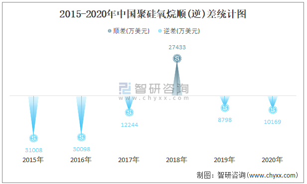 2015-2020年中國聚硅氧烷順(逆)差統計圖