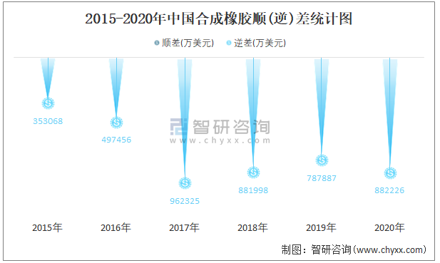2015-2020年中國合成橡膠順(逆)差統(tǒng)計圖
