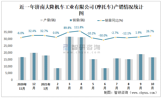 近一年濟南大隆機車工業有限公司產銷情況統計圖