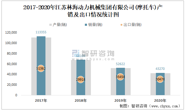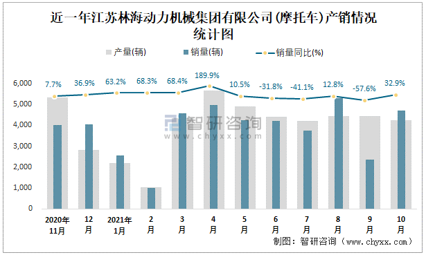 根據(jù)中國汽車工業(yè)(摩托車)產(chǎn)銷快訊數(shù)據(jù)顯示:2021年10月江蘇林海動力機(jī)械集團(tuán)有限公司(摩托車)產(chǎn)量為4241輛,同比增長3.04%,銷量為4698輛,同比增長32.9%;2021年1-10月江蘇林海動力機(jī)械集團(tuán)有限公司(摩托車)累計(jì)產(chǎn)量為39872輛,同比增長15.48%,累計(jì)銷量為37596輛,同比增長6.75%;年江蘇林海動力機(jī)械集團(tuán)有限公司(摩托車)產(chǎn)銷量2017年達(dá)到最高值,此后逐年遞減,且近4年總銷量大于總產(chǎn)量,清倉庫存3717輛,2019年起銷量以出口為主。