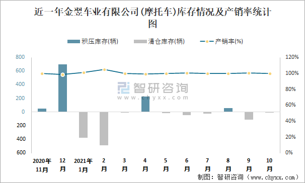 近一年金翌車業有限公司庫存情況及產銷率統計圖