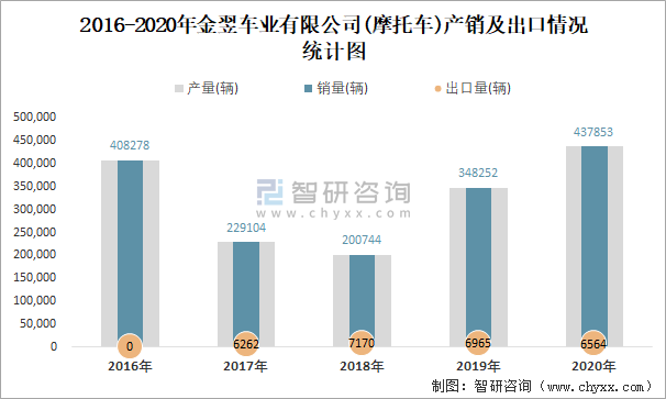 2016-2020年金翌車業有限公司產銷及出口情況統計圖