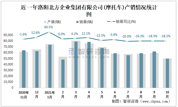 近一年洛陽北方企業集團有限公司產銷情況統計圖