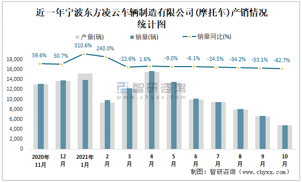 近一年寧波東方凌云車輛制造有限公司產銷情況統計圖