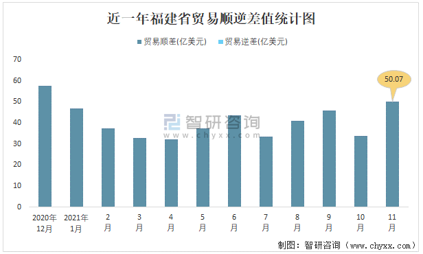 近一年福建省貿(mào)易順逆差值統(tǒng)計(jì)圖