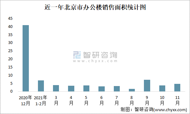 近一年北京市辦公樓銷售面積統計圖