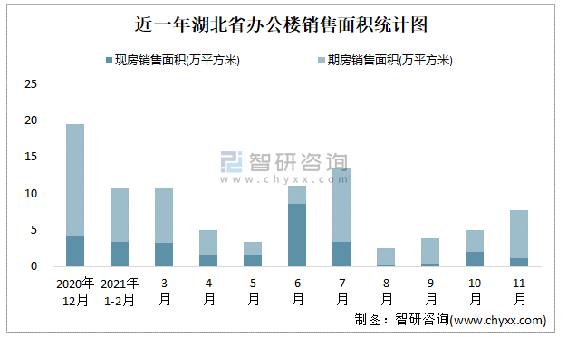 近一年湖北省辦公樓銷售面積統(tǒng)計圖