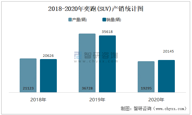 2018-2020年奕跑(SUV)產銷統計圖