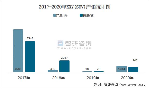 2017-2020年KX7(SUV)產(chǎn)銷統(tǒng)計圖