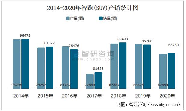 2014-2020年智跑(SUV)產銷統計圖