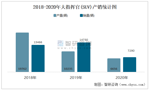 2018-2020年大指揮官(SUV)產(chǎn)銷(xiāo)統(tǒng)計(jì)圖
