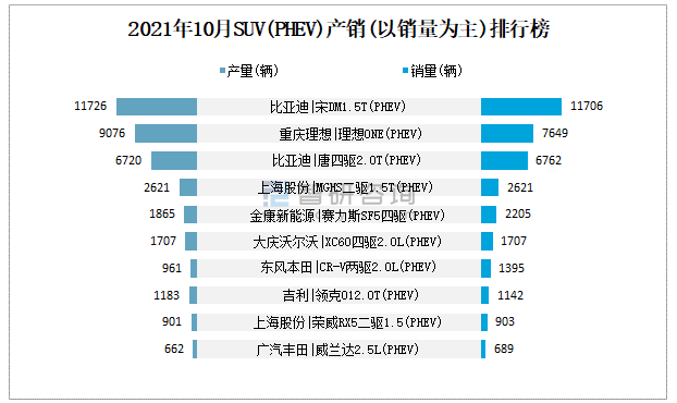 2021年10月SUV(PHEV)產(chǎn)銷(xiāo)(以銷(xiāo)量為主)排行榜