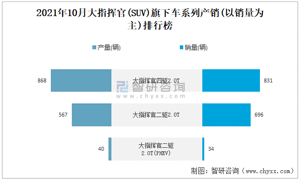 2021年10月大指揮官旗下車(chē)系列產(chǎn)銷(xiāo)(以銷(xiāo)量為主)排行榜