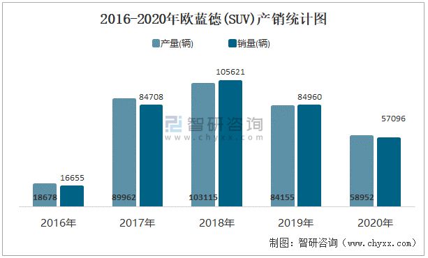 2016-2020年歐藍德(SUV)產銷統計圖