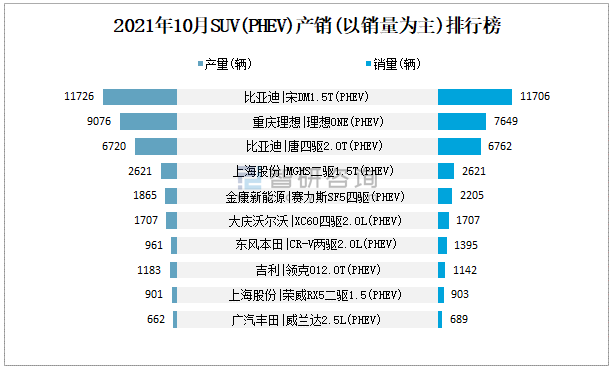 2021年10月SUV(PHEV)產銷(以銷量為主)排行榜