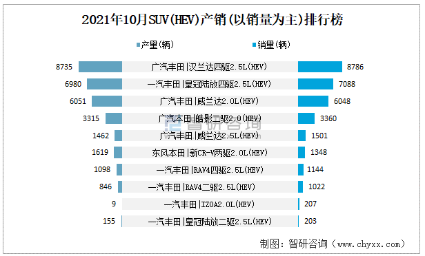 2021年10月SUV(HEV)產銷(以銷量為主)排行榜