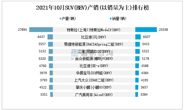 2021年10月SUV(BEV)產(chǎn)銷(以銷量為主)排行榜