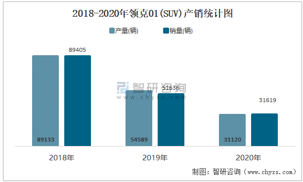 2018-2020年領克01(SUV)產(chǎn)銷統(tǒng)計圖