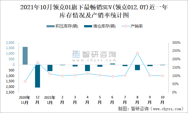 2021年10月領克01旗下最暢銷SUV(領克012.0T)近一年庫存情況及產(chǎn)銷率統(tǒng)計圖