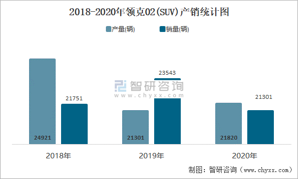根據中國汽車工業協會數據可知:2021年10月領克02(SUV)產量為1946輛,同比下降22.8%,銷量為1876輛,同比下降4.4%,當月產銷率為96.4%;2021年1-10月領克02(SUV)累計產量為9576輛,同比下降49%,累計銷量為10703輛,同比下降39.9%,累計產銷率為111.77%;2018-2020年領克02(SUV)銷量在2019年達到最高值,此后有所下滑,且近3年總產量大于總銷量,積壓了庫存1447輛。