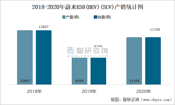 2018-2020年蔚來ES8(BEV)(SUV)產銷統計圖