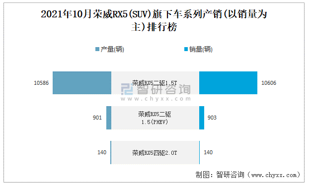 2021年10月榮威RX5旗下車系列產銷(以銷量為主)排行榜