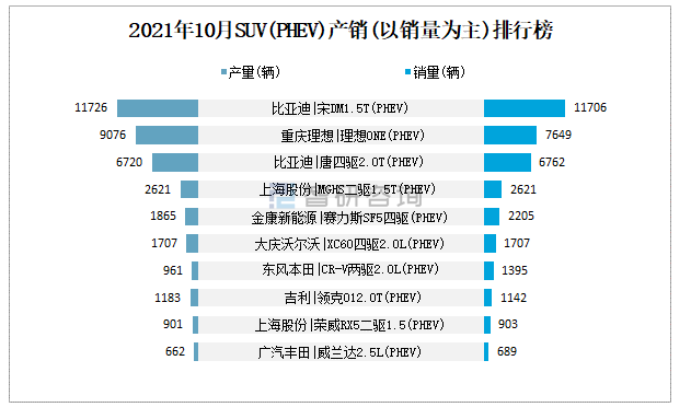 2021年10月SUV(PHEV)產銷(以銷量為主)排行榜