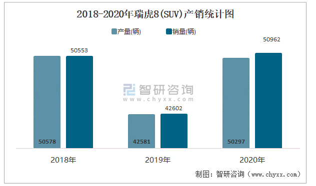 2018-2020年瑞虎8(SUV)產(chǎn)銷統(tǒng)計(jì)圖