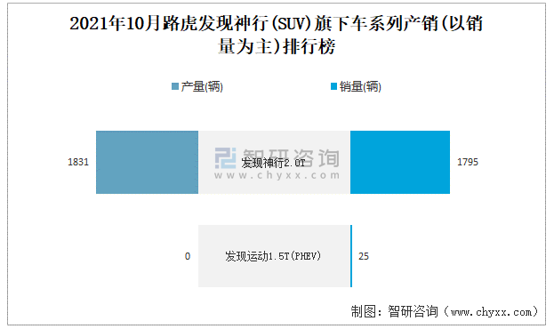 2021年10月路虎發現神行(SUV)產銷量分別為1831輛和1820輛 當月產銷率為99.4%