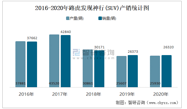 2016-2020年路虎發現神行(SUV)產銷統計圖