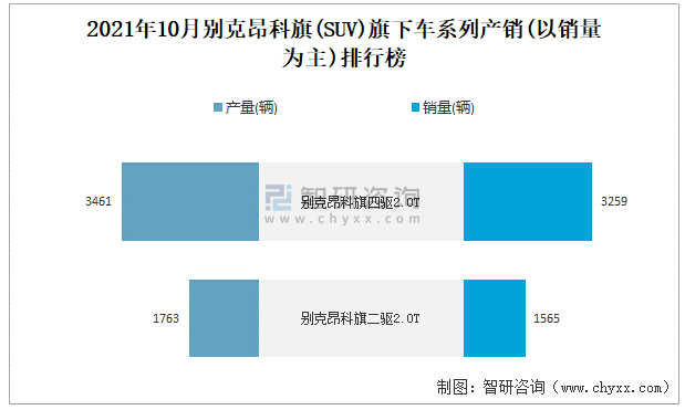 2021年10月別克昂科旗旗下車系列產(chǎn)銷(以銷量為主)排行榜