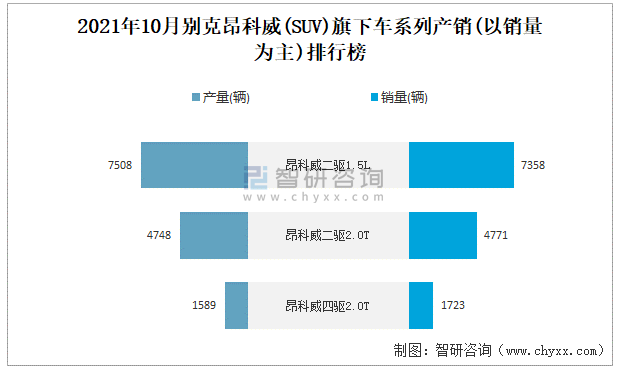 2021年10月別克昂科威旗下車系列產銷(以銷量為主)排行榜